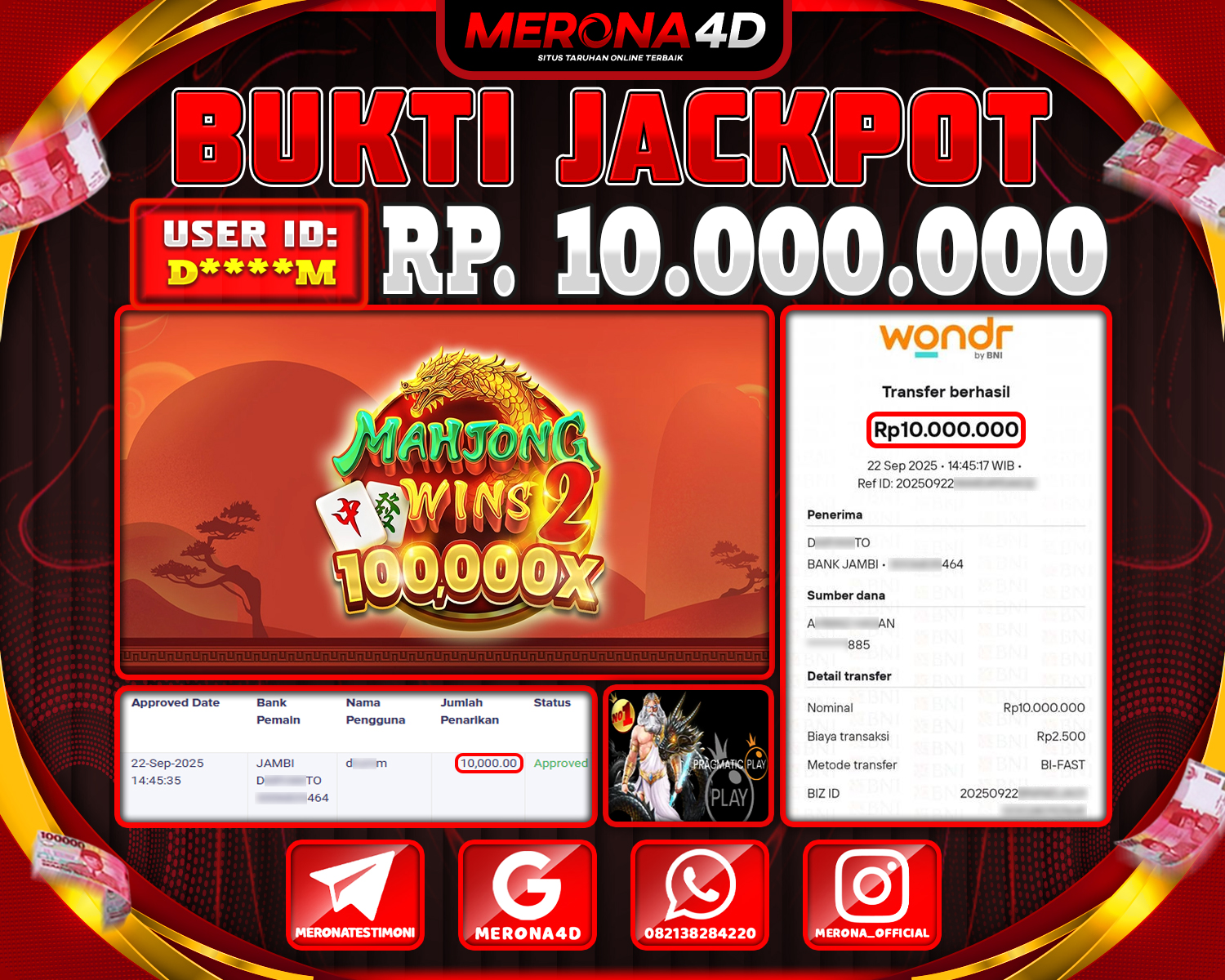 Selamat Kepada Member MERONA4D D*****M Telah Jackpot Di MAHJONG WINS 2