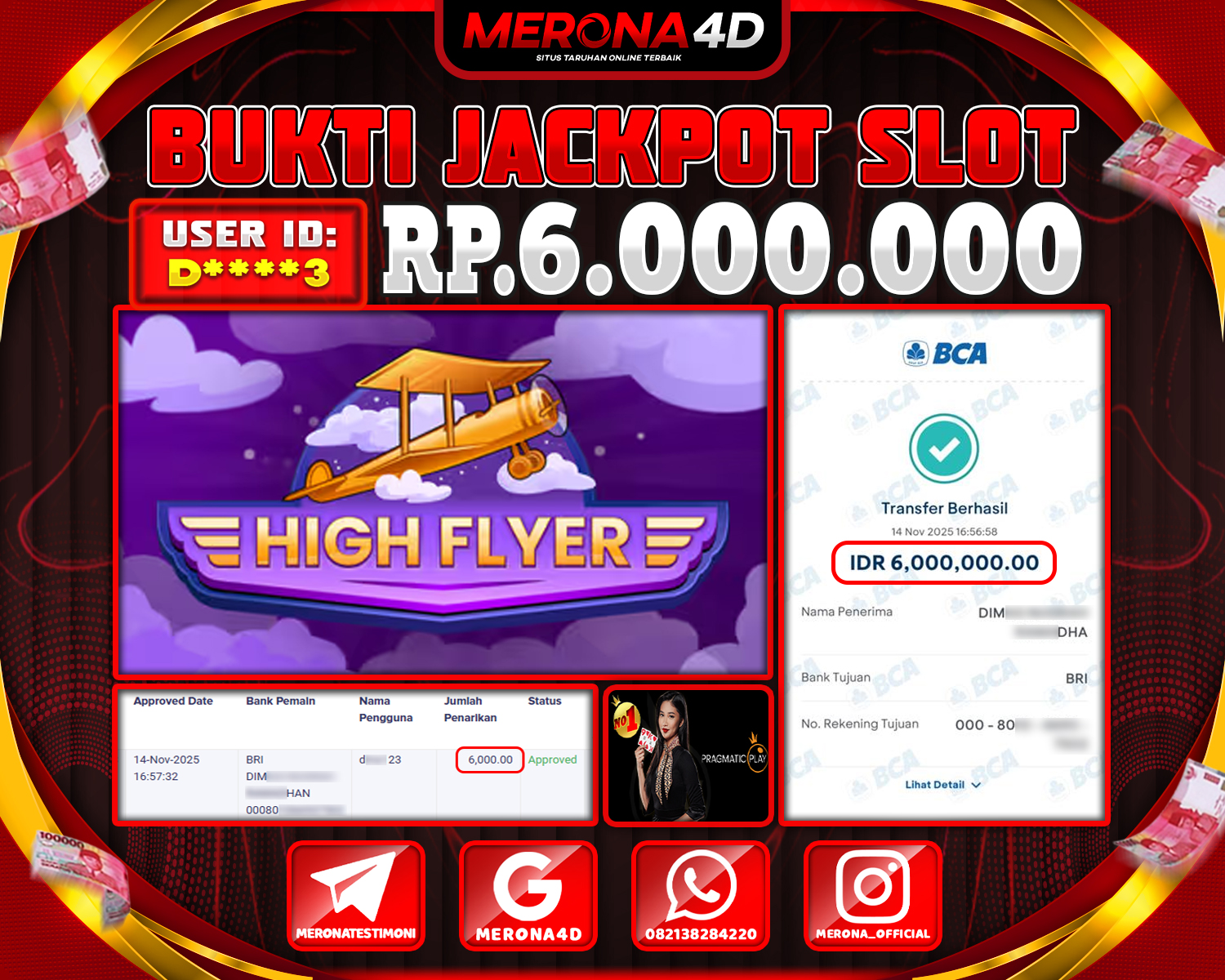 Selamat Kepada Member MERONA4D Dβ­‘οΏ½***οΏ½β­‘3 Telah Jackpot Di HIGHFLYER