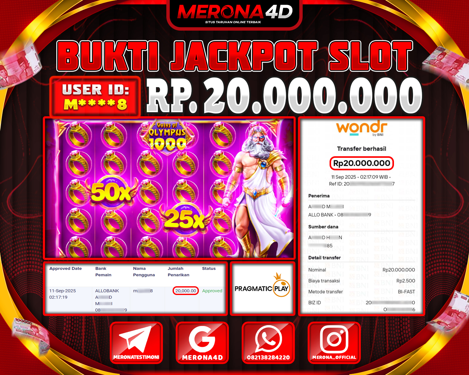 Selamat Kepada Member MERONA4D M****8 Telah Jackpot Di GATES OF OLYMPUS 1000