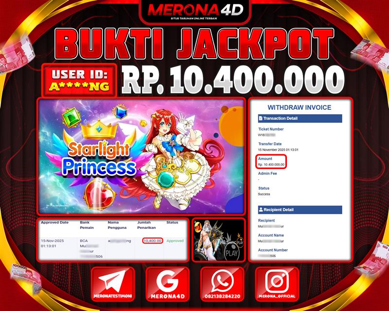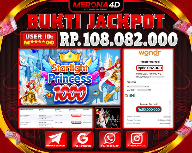 Selamat Kepada Member MERONA4D M*****00 Telah Jackpot Di STARLIGHT PRINCESS 1000