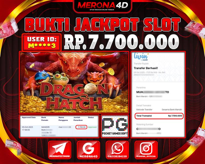 Selamat Kepada Member MERONA4D M****3 Telah Jackpot Di DRAGON HATCH 2