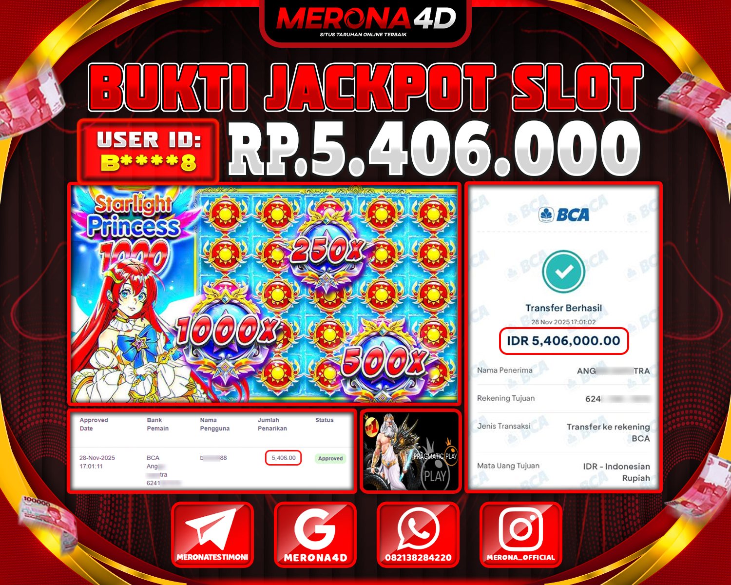 Selamat Kepada Member MERONA4D B****8 Telah Jackpot Di STARLIGHT PRINCESS 1000
