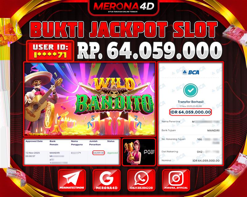Selamat Kepada Member MERONA4D I*****71 Telah Jackpot Di WILD BANDITO