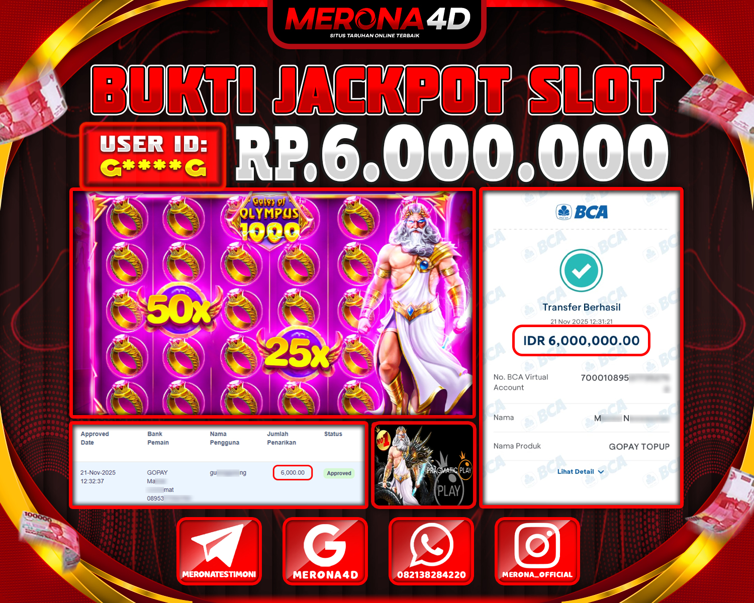Selamat Kepada Member MERONA4D I****K Telah Jackpot Di GATES OF OLYMPUS 1000