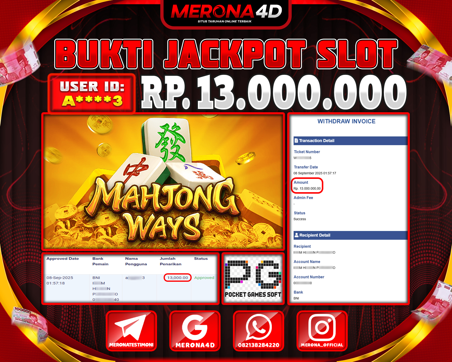 Selamat Kepada Member MERONA4D N****N Telah Jackpot Di MAHJONG WAYS