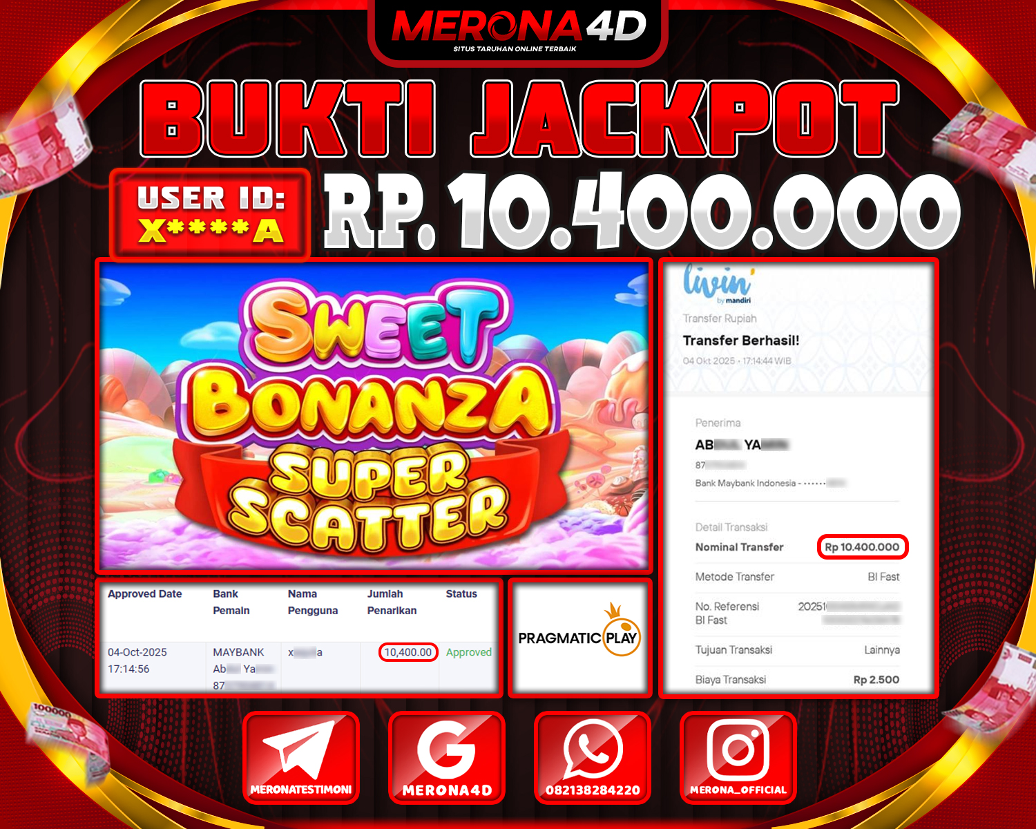 Selamat Kepada Member MERONA4D X****A Telah Jackpot Di SWEET BONANZA SUPER SCATTER