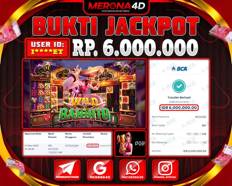 Selamat Kepada Member MERONA4D I*****ET Telah Jackpot Di WILD BANDITO