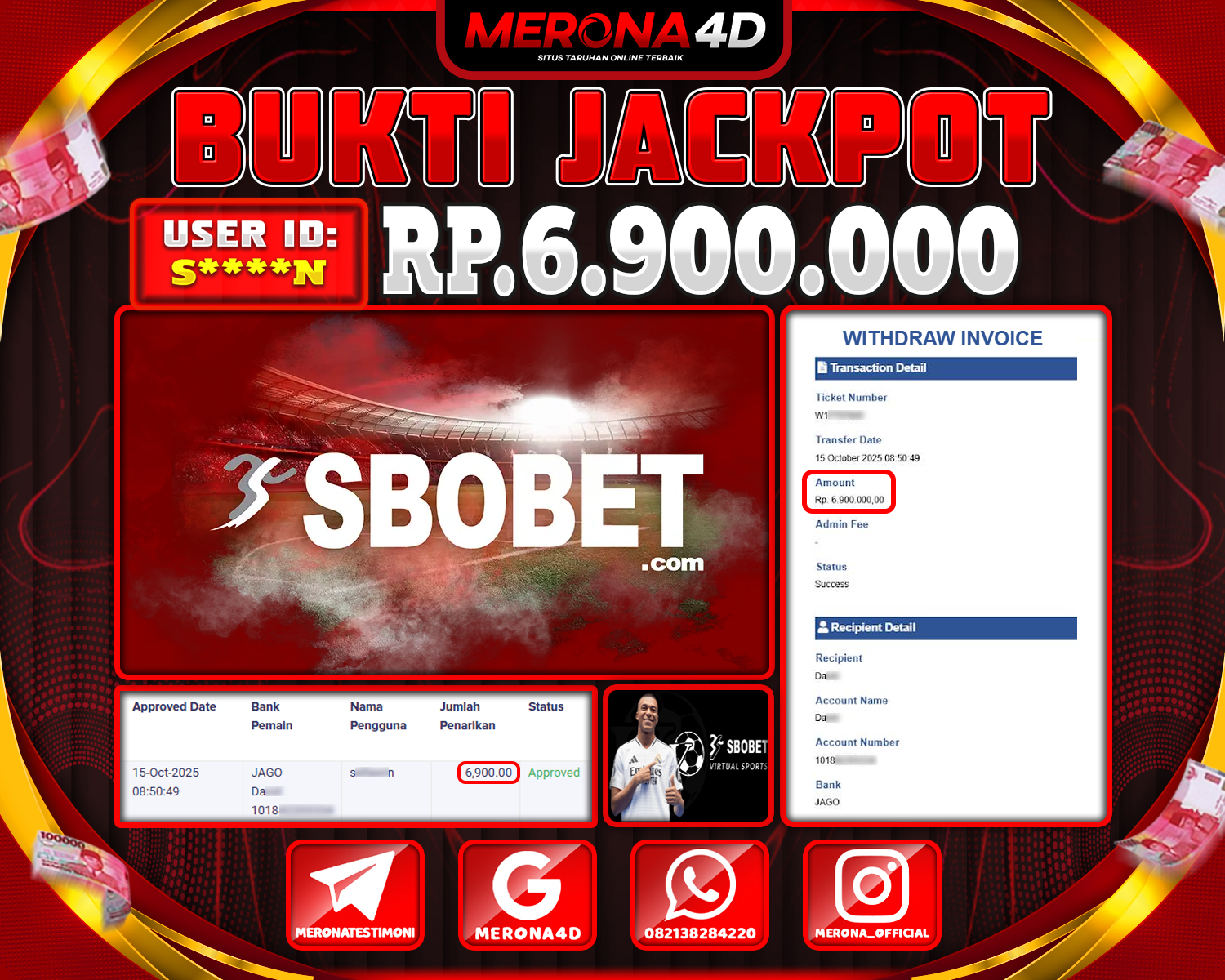 Selamat Kepada Member MERONA4D Sβ­‘οΏ½***οΏ½β­‘N Telah Jackpot Di SBO SPORTS BOOK