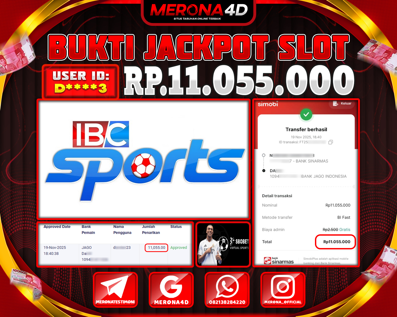 Selamat Kepada Member MERONA4D D****3 Telah Jackpot Di IBC SPORTS