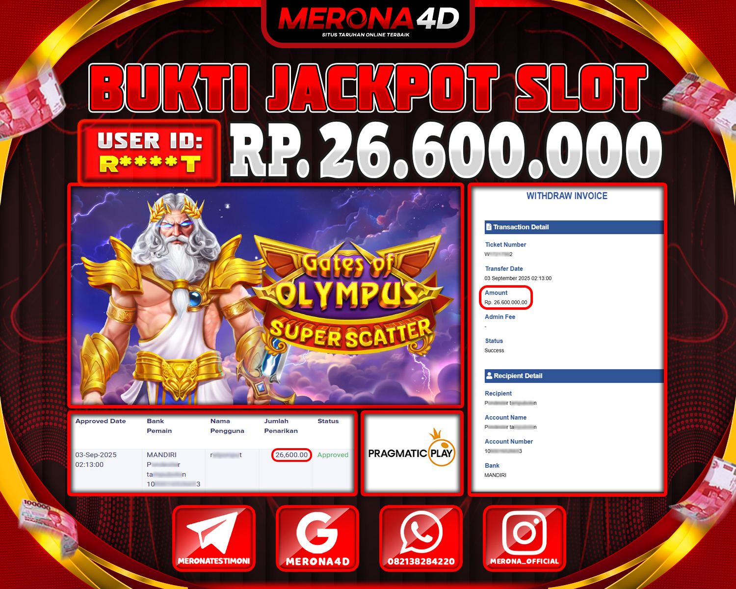 Selamat Kepada Member MERONA4D R****T Telah Jackpot Di GATES OF OLYMPUS SUPER SCATTER