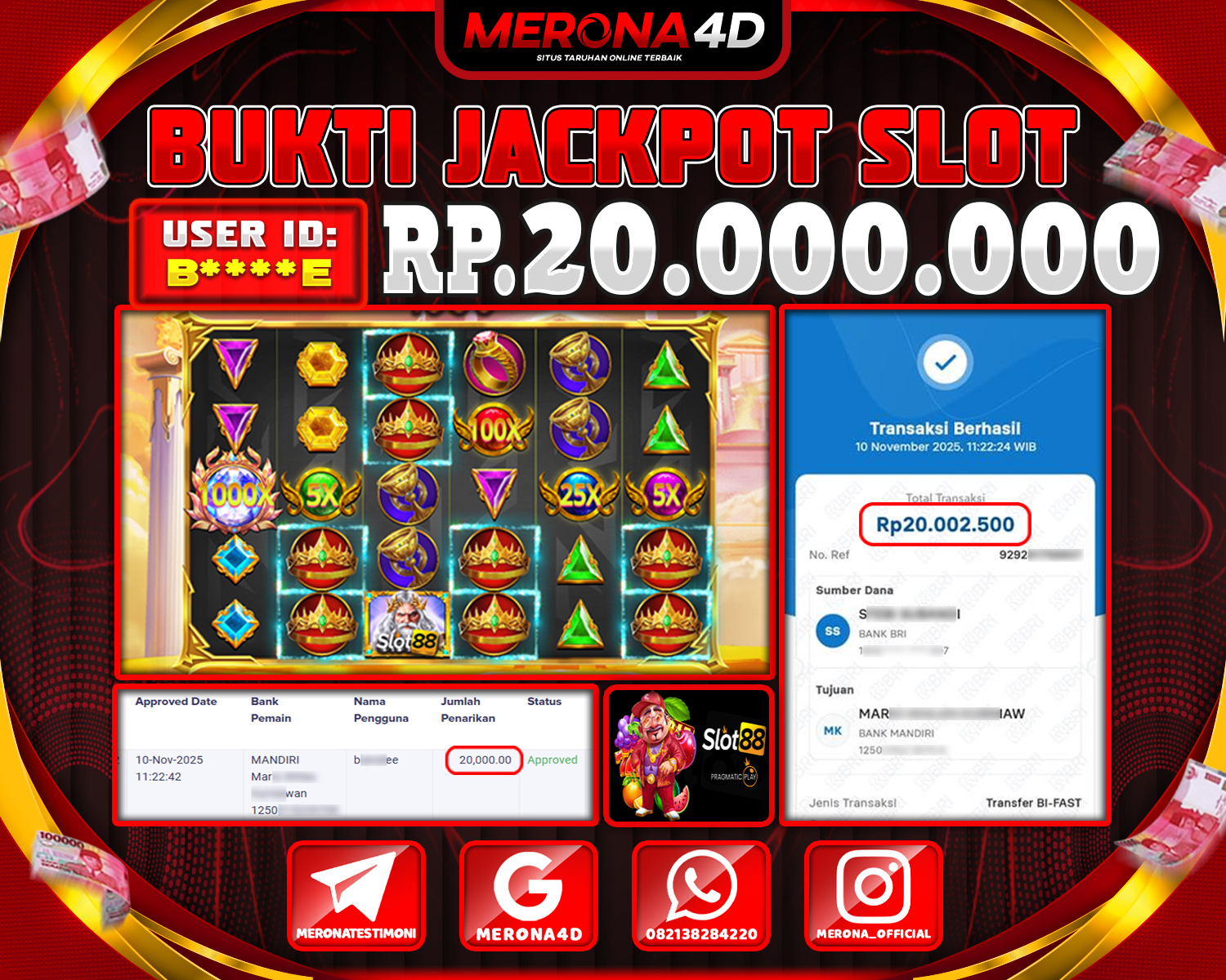 Selamat Kepada Member MERONA4D Bβ­‘οΏ½***οΏ½β­‘E Telah Jackpot Di SLOT88 OLYMPUS 1000