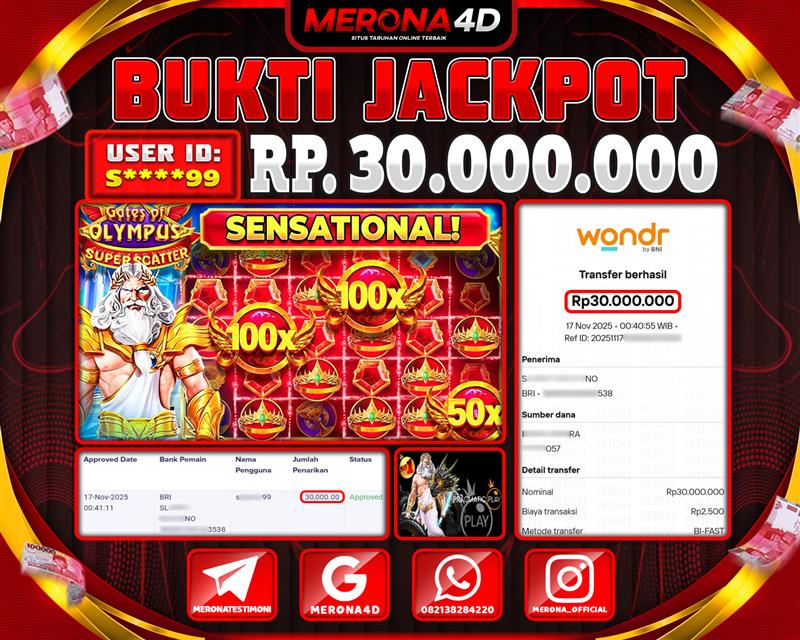 Selamat Kepada Member MERONA4D S*****99 Telah Jackpot Di GATES OF OLYMPUS SUPER SCATTER
