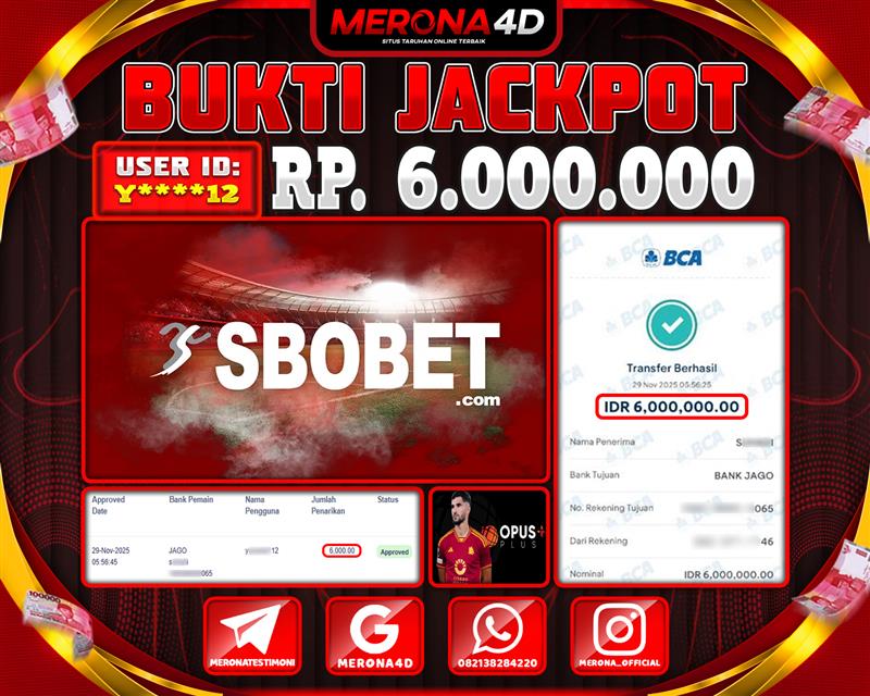 Selamat Kepada Member MERONA4D Y*****12 Telah Jackpot Di OPUS SPORTBOOKS