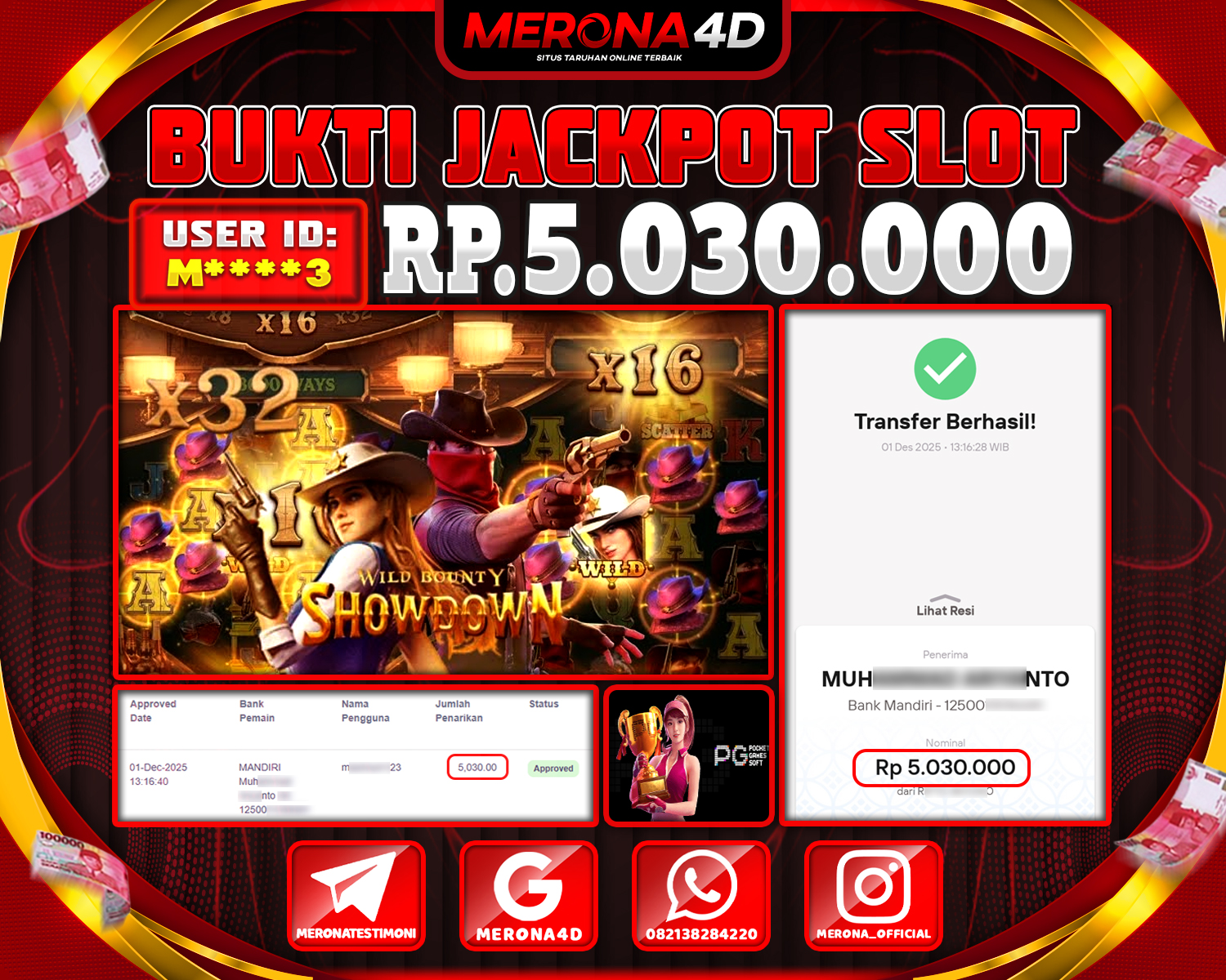 Selamat Kepada Member MERONA4D M****3 Telah Jackpot Di WILD BOUNTY SHOWDOWN