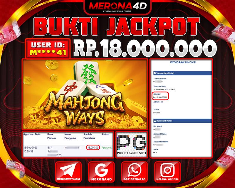 Selamat Kepada Member MERONA4D M*****41 Telah Jackpot Di MAHJONG WAYS 1