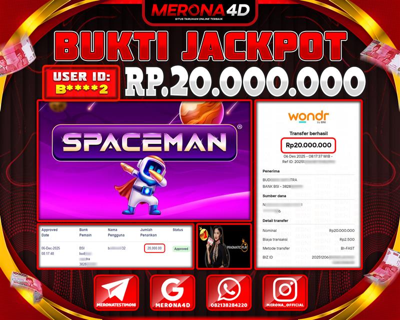 Selamat Kepada Member MERONA4D B*****2 Telah Jackpot Di SPACEMAN
