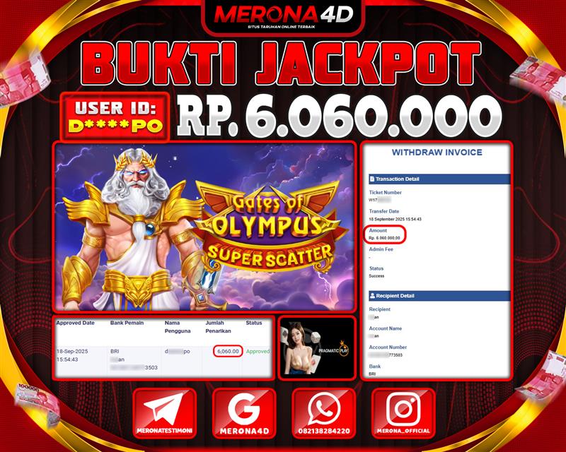 Selamat Kepada Member MERONA4D D*****O Telah Jackpot Di GATES OF OLYMPUS SUPER SCATTER