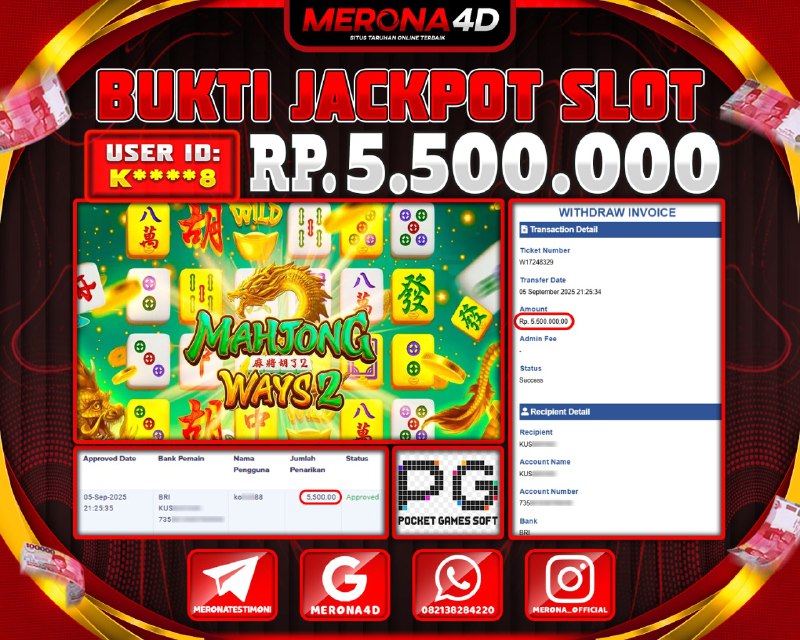 Selamat Kepada Member MERONA4D Kβ­‘οΏ½***οΏ½β­‘8 Telah Jackpot Di MAHJONG WAYS 2