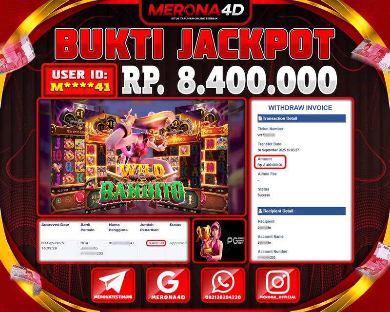 Selamat Kepada Member MERONA4D M******1. Telah Jackpot Di WILD BANDITO