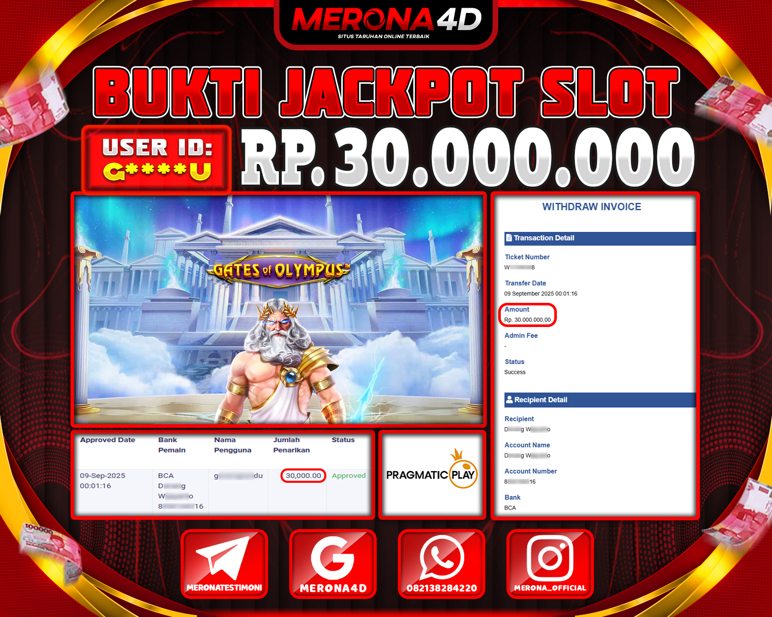 Selamat Kepada Member MERONA4D G****U Telah Jackpot Di GATES OF OLYMPUS
