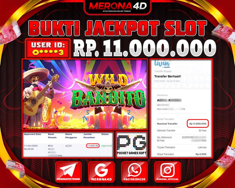 Selamat Kepada Member MERONA4D O*****3 Telah Jackpot Di WILD BANDITO