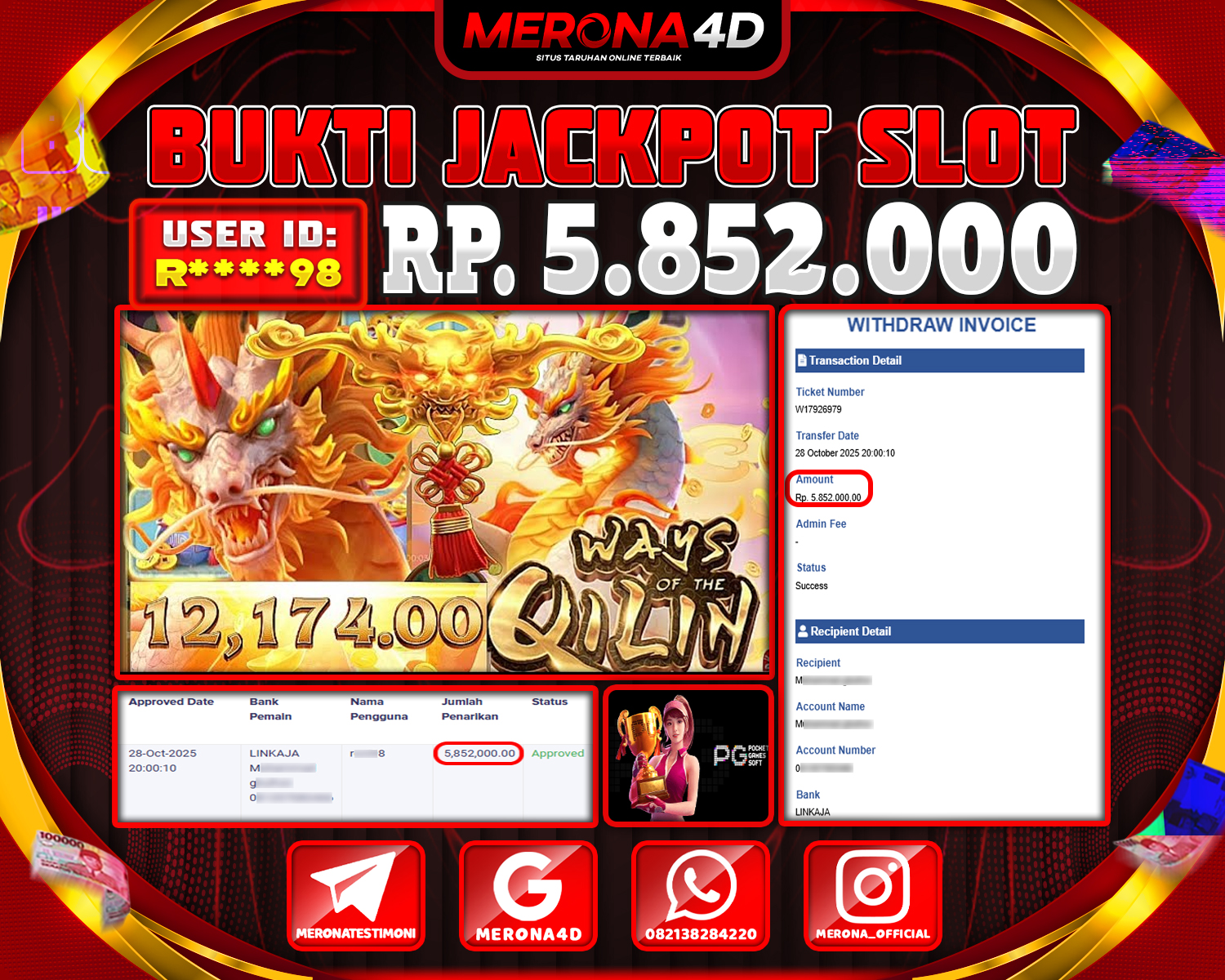 Selamat Kepada Member MERONA4D R*****98 Telah Jackpot Di WAYS OF THE QILIN
