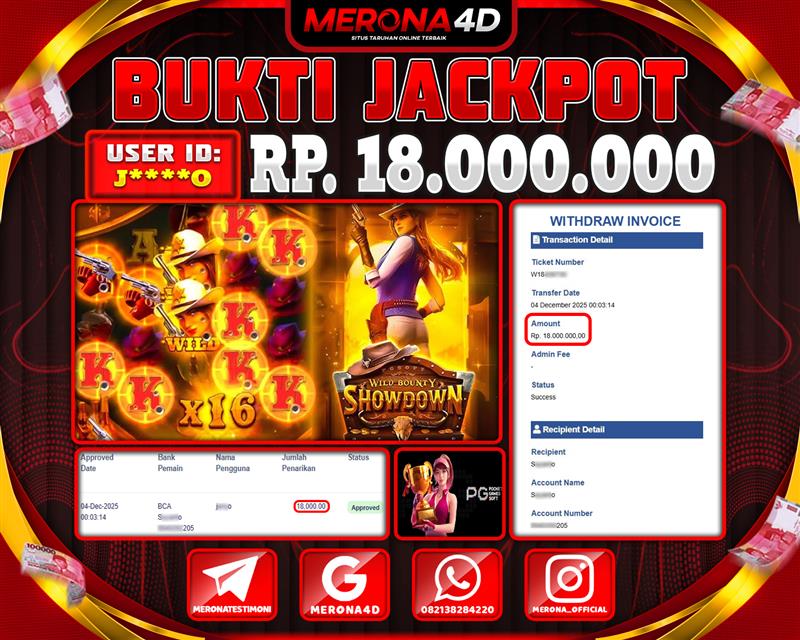 Selamat Kepada Member MERONA4D J****O Telah Jackpot Di WILD BOUNTY SHOWDOWN