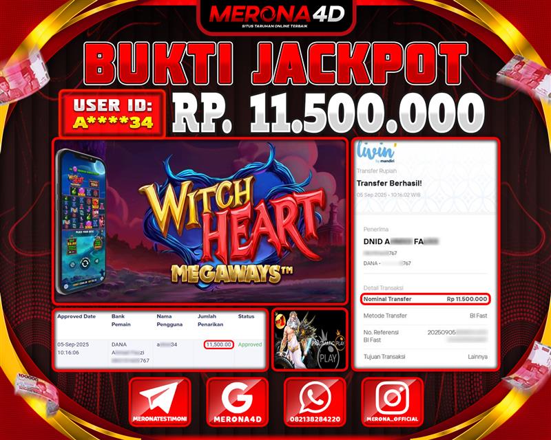 Selamat Kepada Member MERONA4D A*****34 Telah Jackpot Di WITCH HEART MEGAWAYS