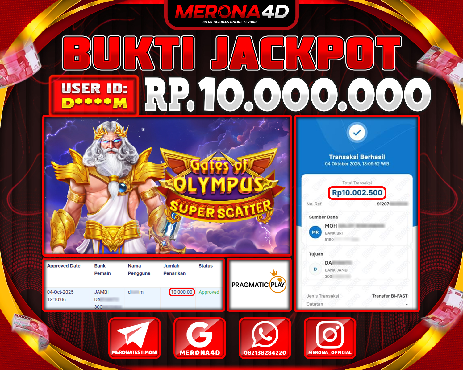 Selamat Kepada Member MERONA4D M****O Telah Jackpot Di GATES OF OLYMPUS 1000