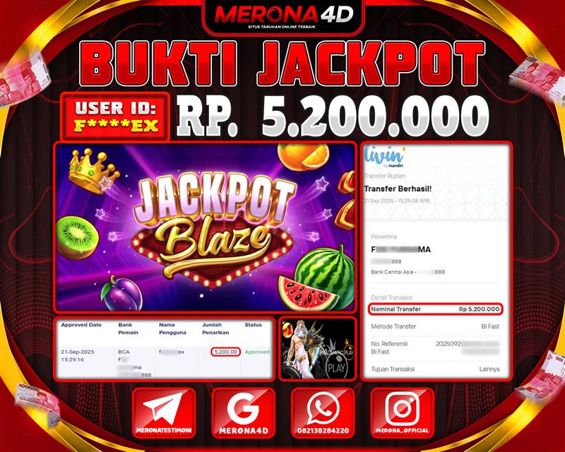 Selamat Kepada Member MERONA4D F*****X Telah Jackpot Di JACKPOT BLAZE