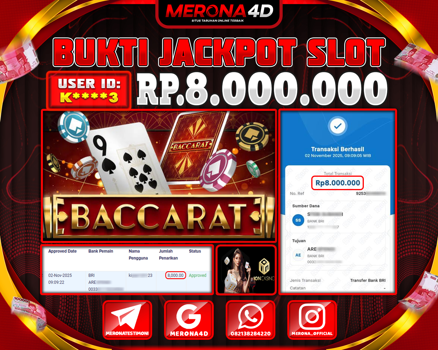 Selamat Kepada Member MERONA4D K****3 Telah Jackpot Di BACCARAT