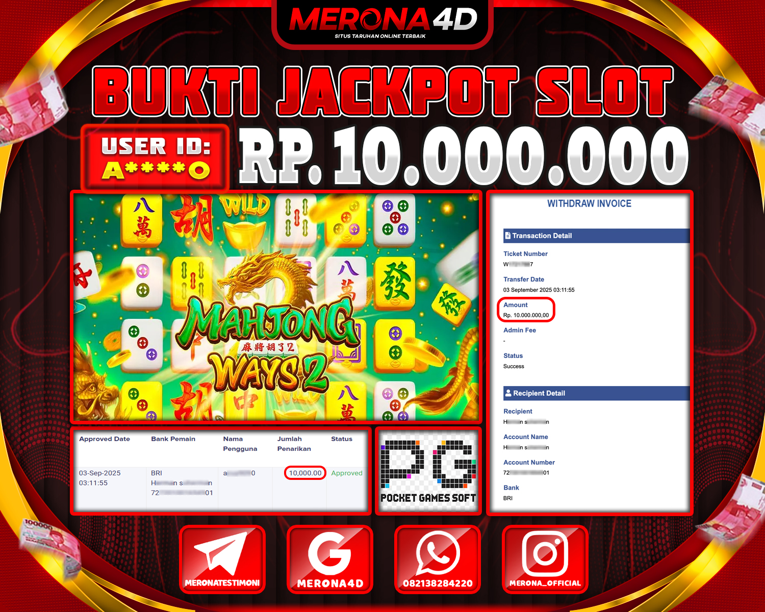 Selamat Kepada Member MERONA4D A****0 Telah Jackpot Di MAHJONG WAYS 2