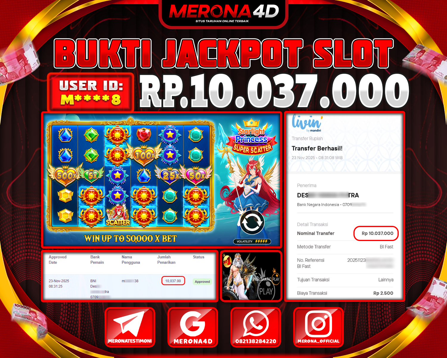 Selamat Kepada Member MERONA4D M****8 Telah Jackpot Di STARLIGHT PRINCESS SUPER SCATTER