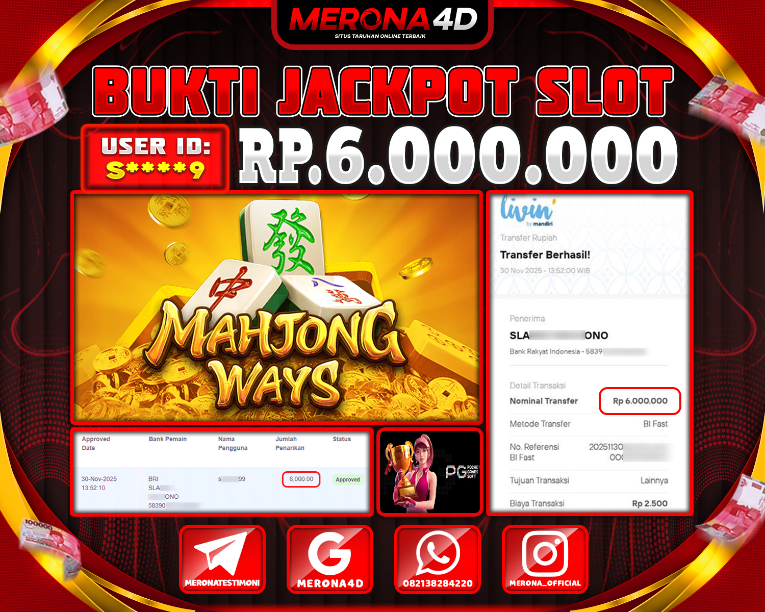 Selamat Kepada Member MERONA4D S****9 Telah Jackpot Di MAHJONG WAYS