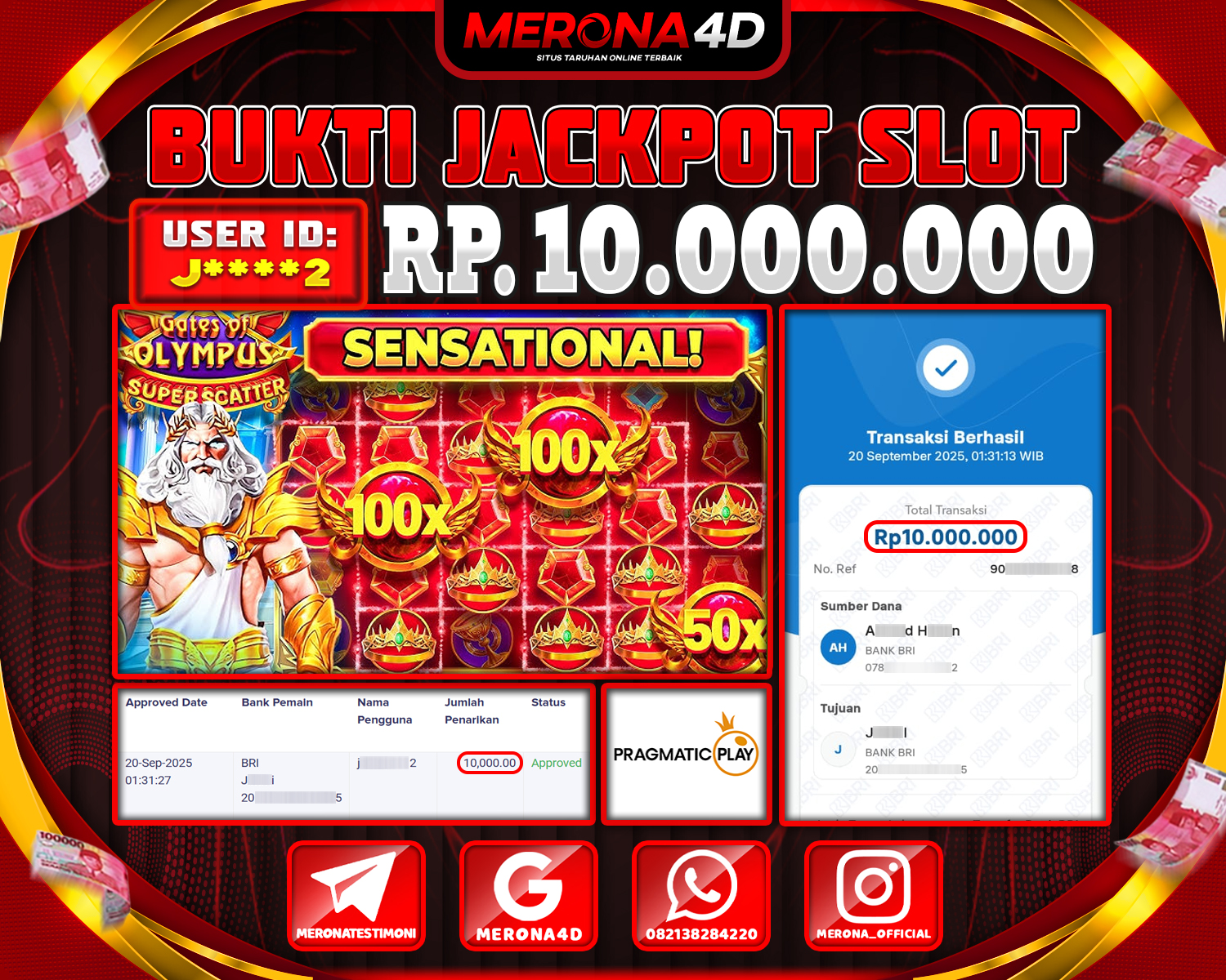 Selamat Kepada Member MERONA4D J****2 Telah Jackpot Di GATES OF OLYMPUS SUPER SCATTER