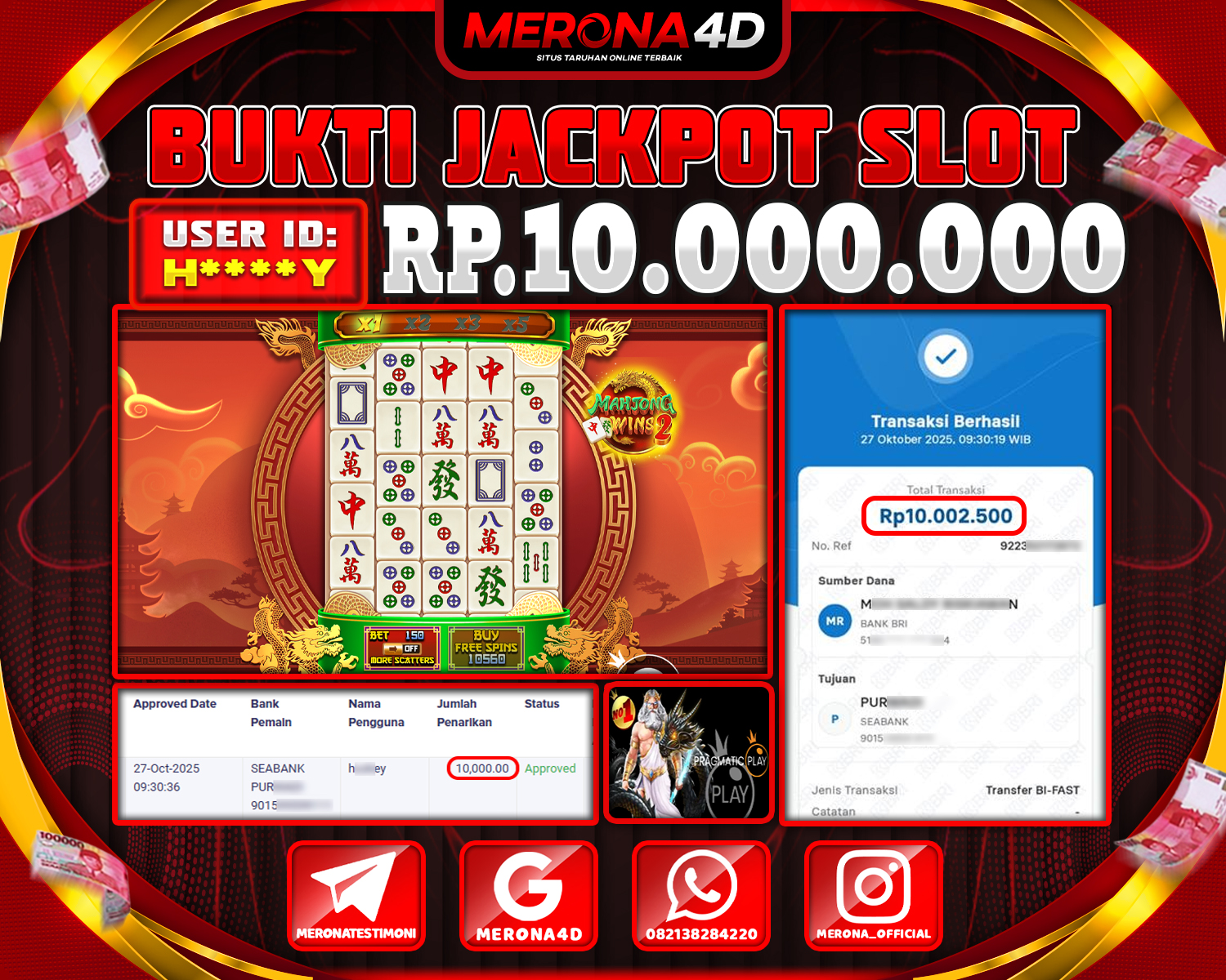 Selamat Kepada Member MERONA4D Y*** Telah Jackpot Di MAHJONG WAYS