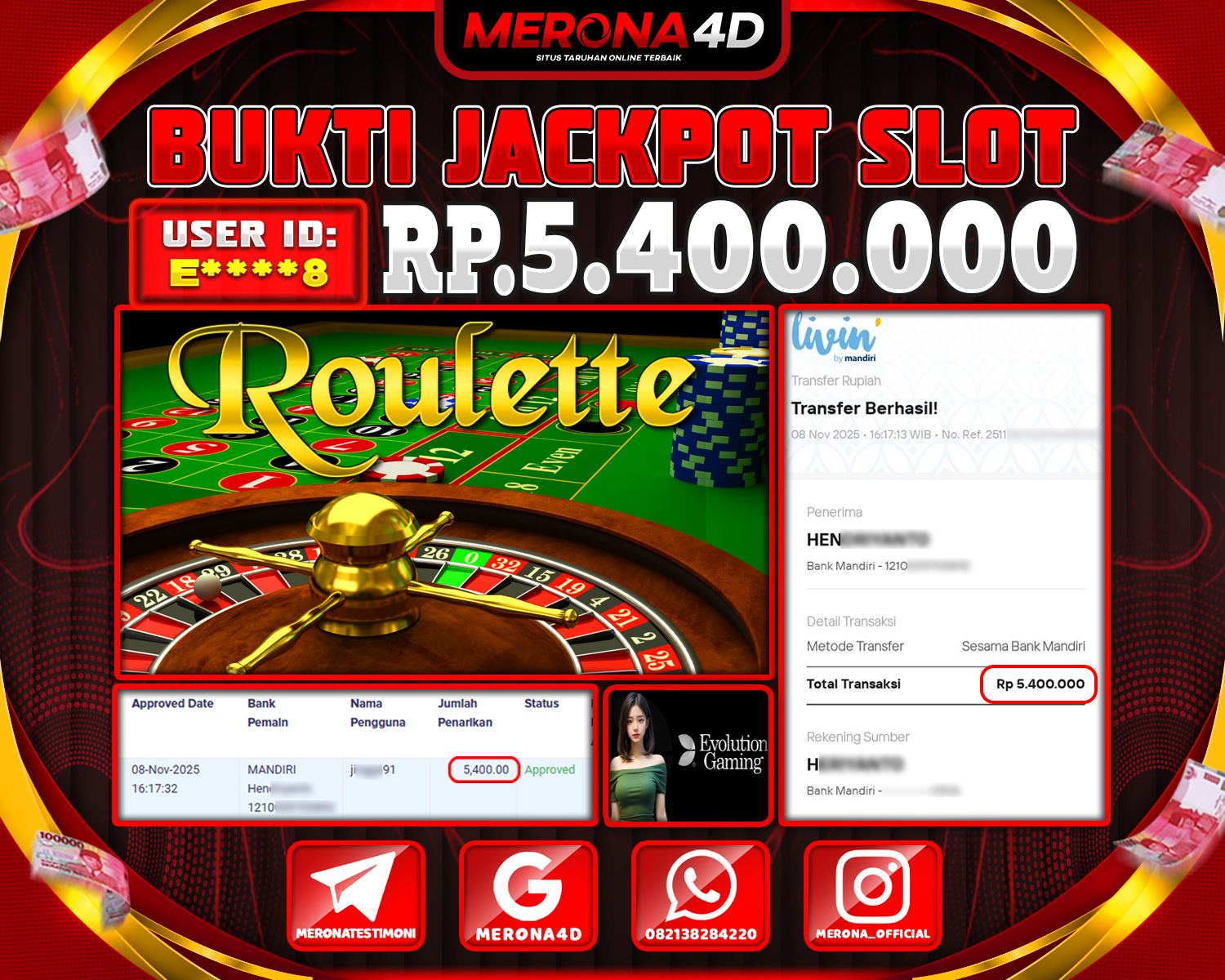 Selamat Kepada Member MERONA4D Eβ­‘οΏ½***οΏ½β­‘8 Telah Jackpot Di ROULLETE