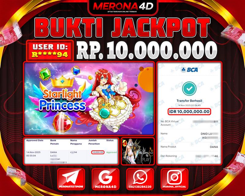 Selamat Kepada Member MERONA4D R****1 Telah Jackpot Di STARLIGHT PRINCESS 1000