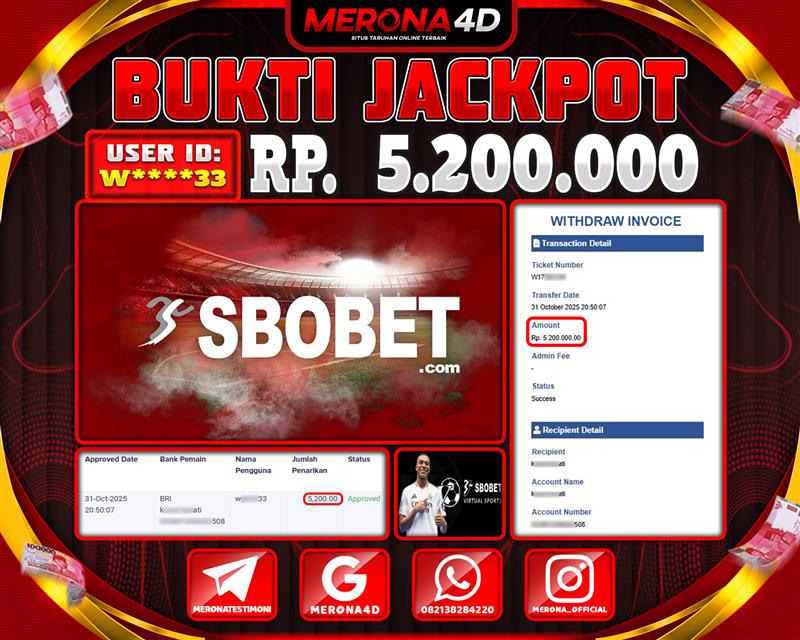 Selamat Kepada Member MERONA4D W*****33 Telah Jackpot Di SBOSPORTS