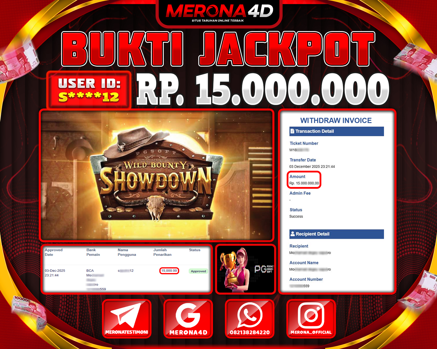 Selamat Kepada Member MERONA4D S*****2 Telah Jackpot Di WILD BOUNTY SHOWDOWN