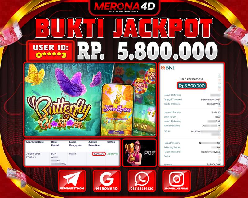 Selamat Kepada Member MERONA4D O*****3 Telah Jackpot Di BUTTERFLY BLOSSOM
