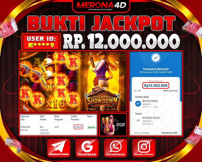 Selamat Kepada Member MERONA4D K****9 Telah Jackpot Di WILD BOUNTY SHOWDOWN