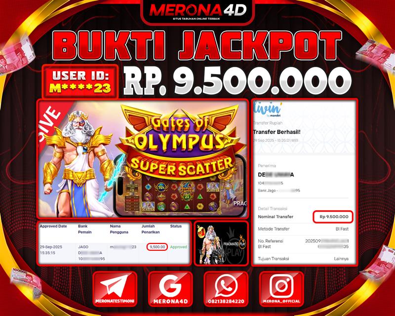 Selamat Kepada Member MERONA4D M****3 Telah Jackpot Di GATES OF OLYMPUS SUPER SCATTER
