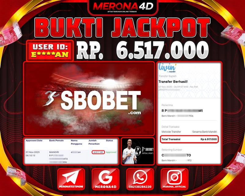 Selamat Kepada Member MERONA4D E*****AN Telah Jackpot Di SBO SPORTS