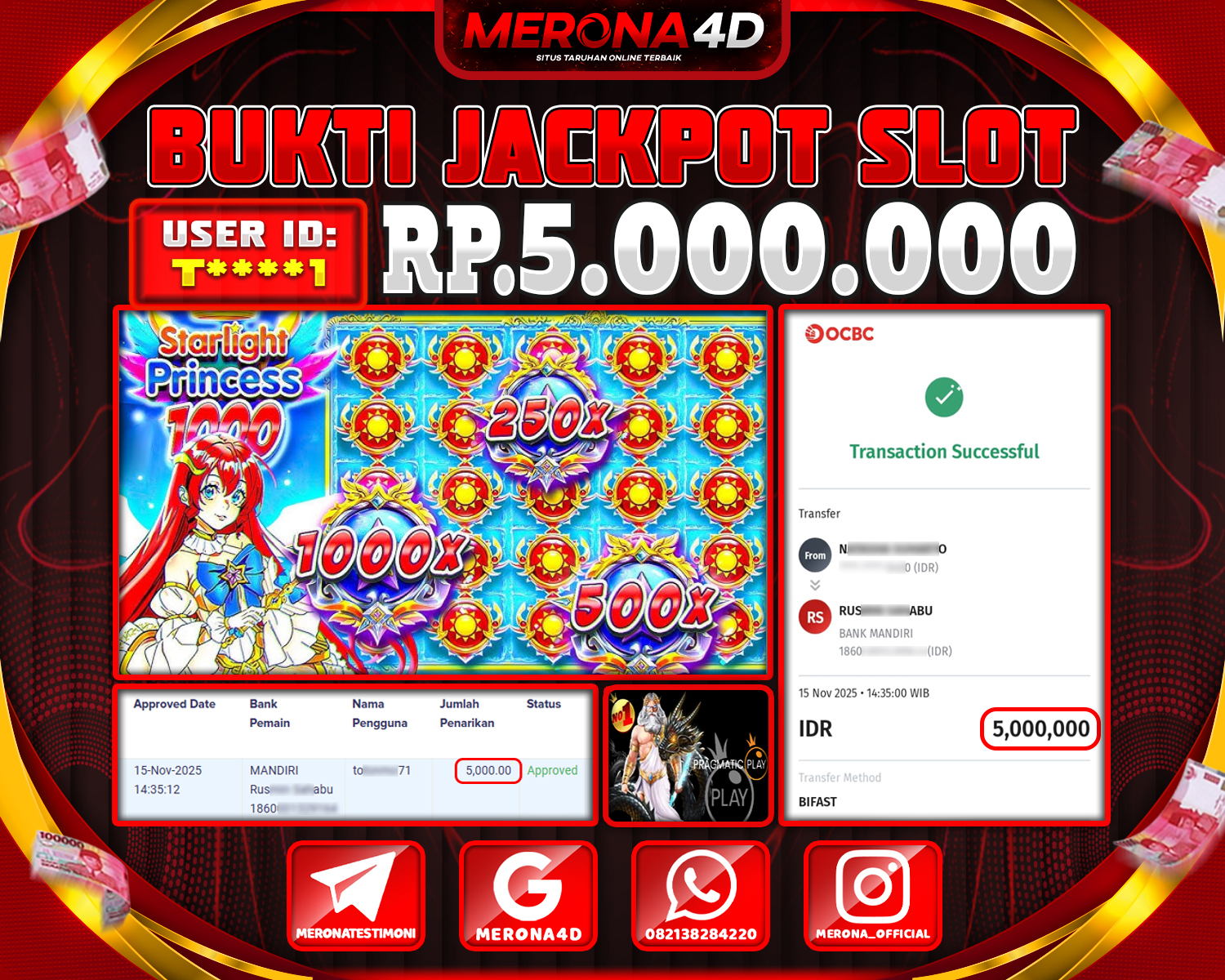 Selamat Kepada Member MERONA4D Tβ­‘οΏ½***οΏ½β­‘1 Telah Jackpot Di STARLIGHT PRINCESS 1000