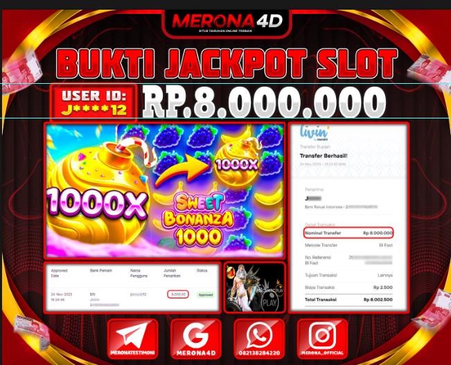 Ingin menang besar di game slot? MERONA4D menghadirkan ratusan slot dari provider ternama seperti Pragmatic Play, PG Soft, Habanero, dan lainnya. Nikmati fitur Buyspin, Free Spin, Scatter, dan Jackpot Progresif. Bonus harian dan event slot rutin siap menambah cuan Anda!