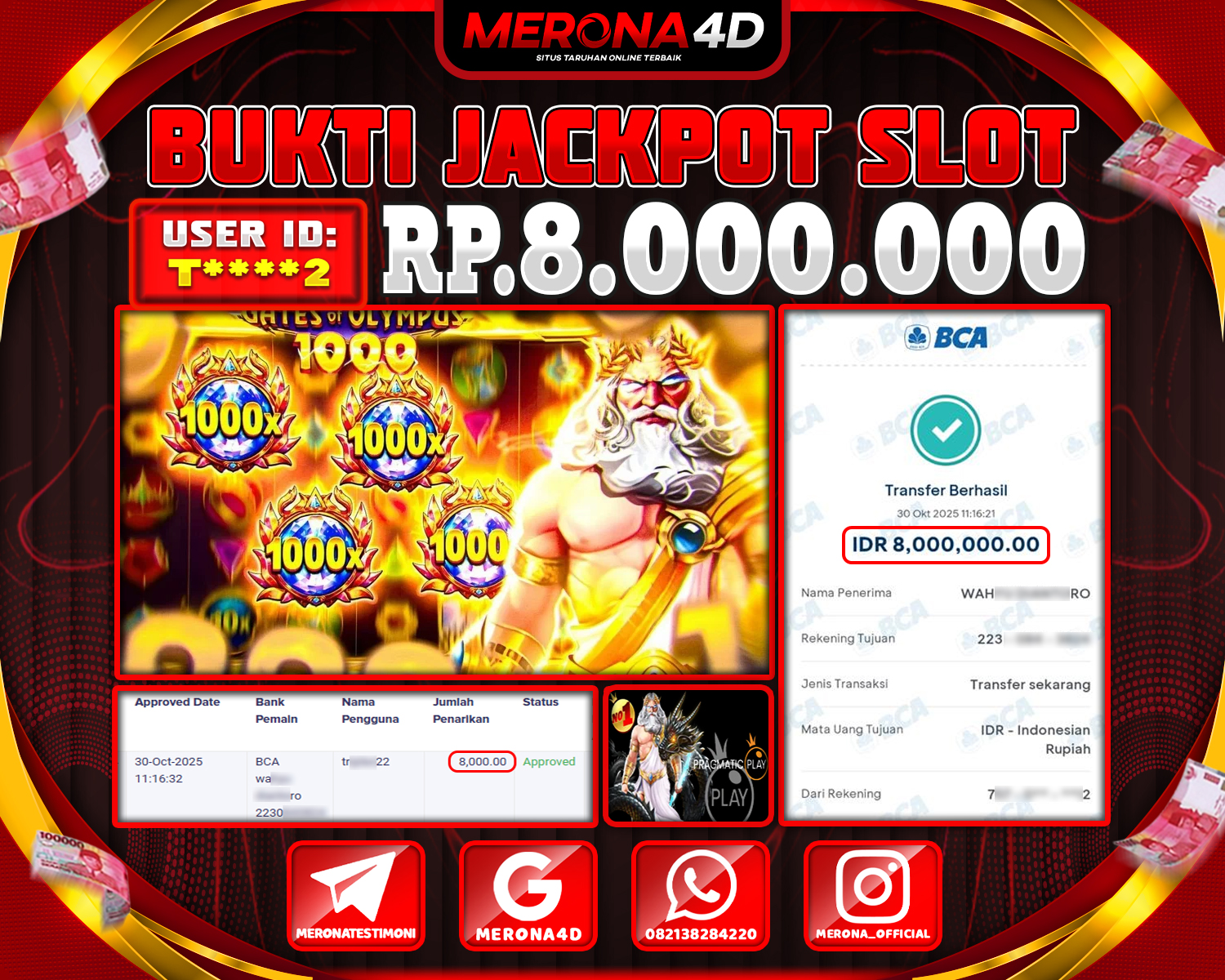 Selamat Kepada Member MERONA4D Tβ­‘οΏ½***οΏ½β­‘2 Telah Jackpot Di GATES OF OLYMPUS 1000