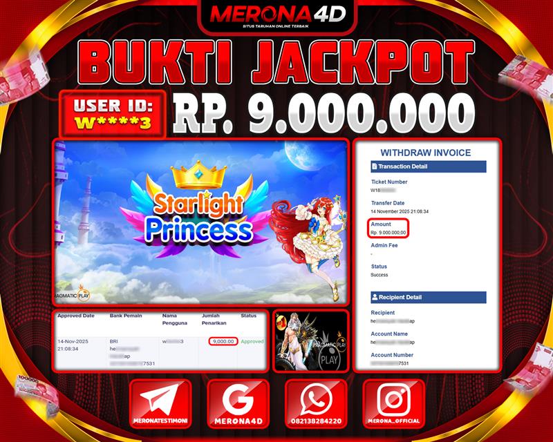 Selamat Kepada Member MERONA4D W*****3 Telah Jackpot Di STARLIGHT PRINCESS