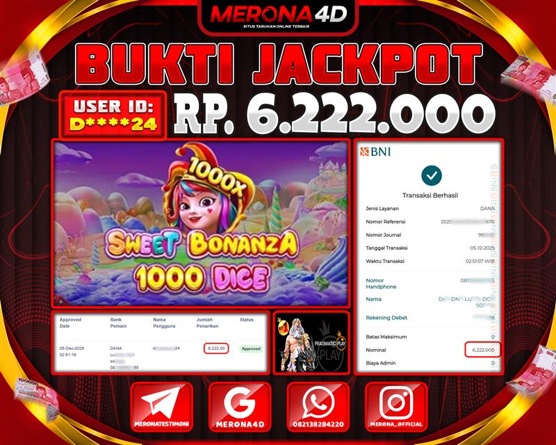 Selamat Kepada Member MERONA4D D*****4 Telah Jackpot Di SWEET BONANZA 1000