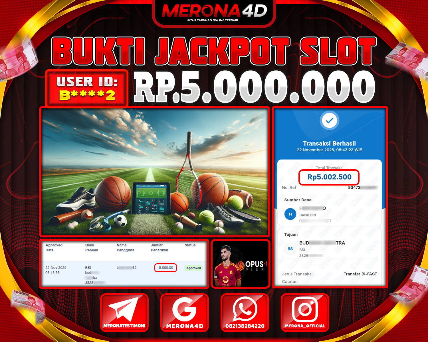 Dari Liga Champions hingga NBA, serta turnamen e-sports favorit seperti Mobile Legends dan Dota 2, MERONA4D menawarkan sportsbook lengkap dengan odds kompetitif dan sistem livescore real-time. Taruhan jadi lebih seru dan transparan!